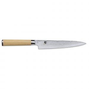 La serie KAI Shun Classic White se distingue por su producción artesanal en Japón, garantizando una calidad superior. Los mangos de madera de Pakka, tratados con resinas de alta calidad, ofrecen resistencia a la humedad y un agarre cómodo.