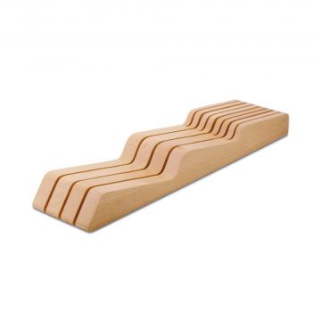 Bloque de cajón para 7 cuchillos en madera de haya maciza, barnizada, apto para cualquier cajón estándar.