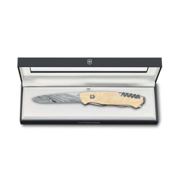 Victorinox suele crear todos los años una navaja con hoja de Acero de Damasco, basándose en un modelo ya editado. En este caso ha usado como referencia la Ranger 55, que puedes también tenemos en Cuchillalia.com: