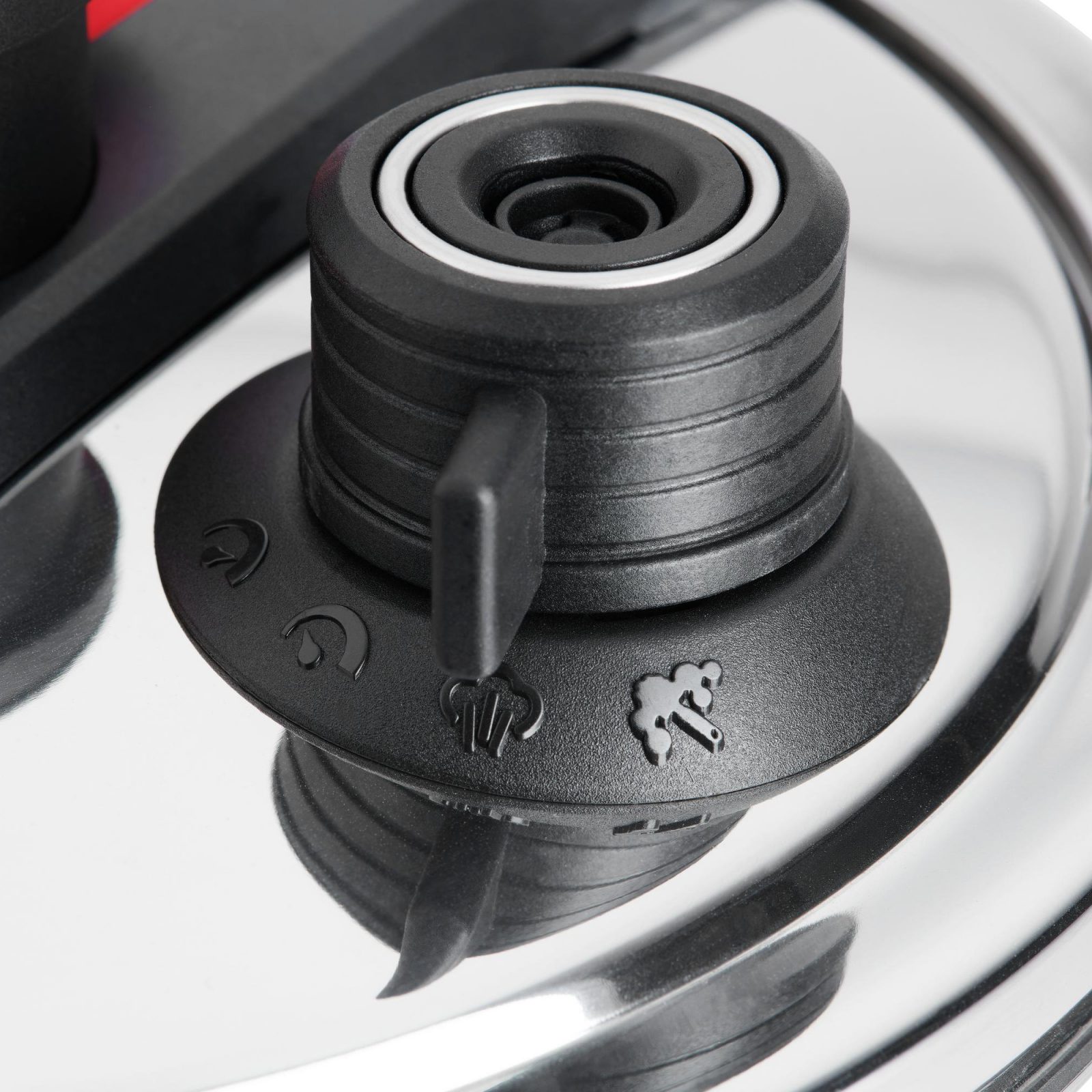 La válvula de seguridad se cierra hasta que la presión haya bajado, garantizando una cocción segura y sin riesgos. - Cesta de vapor incluida