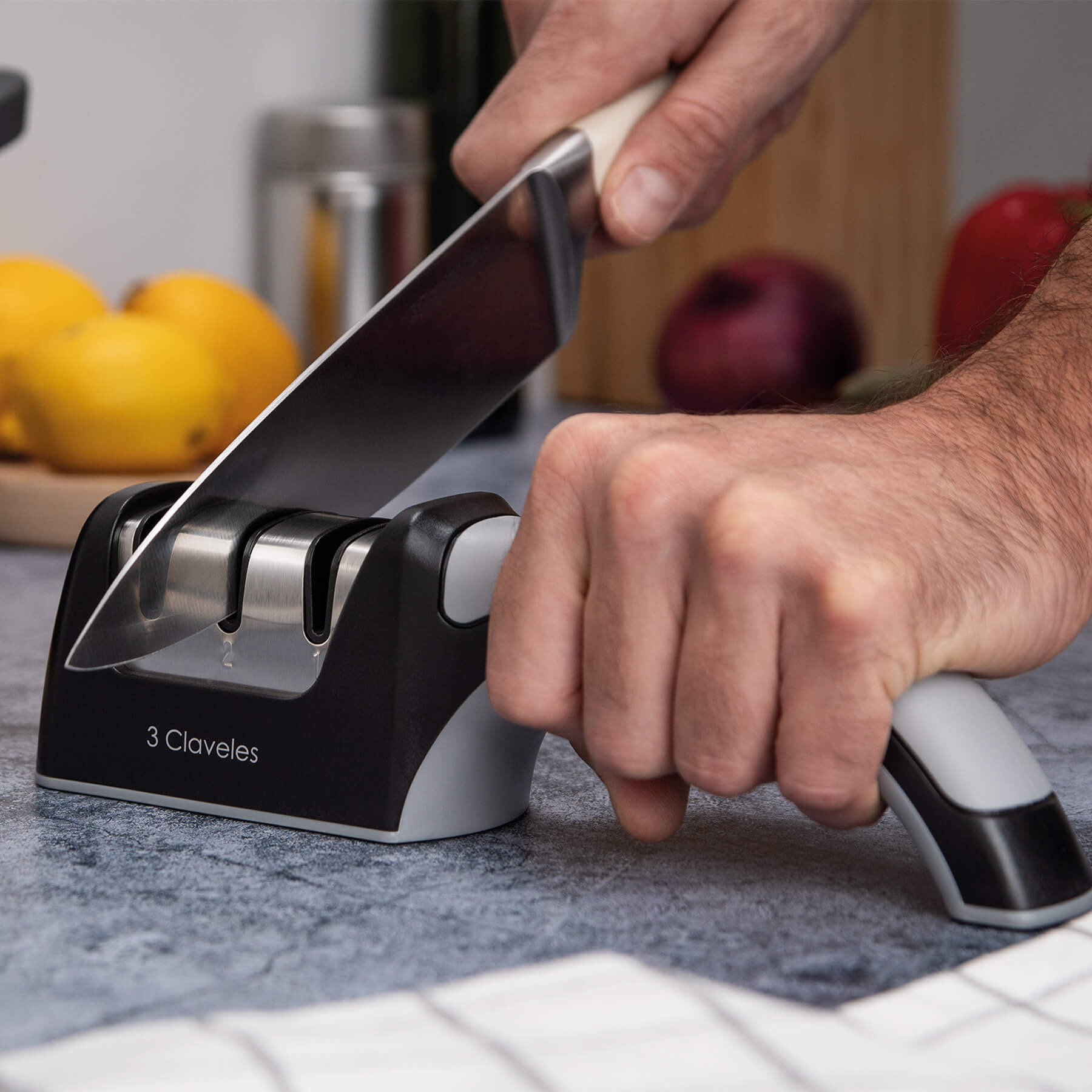 El afilador de cuchillos en 3 pasos de la marca 3 Claveles es un utensilio esencial en cualquier cocina, ya que permite mantener tus cuchillos de forma rápida y sencilla.