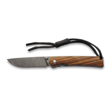 - Posee una hoja de acero inoxidable con acabado imitación acero de Damasco. Es un acabado único que le aporta un estilo sofisticado mientras mantiene la resistencia necesaria para un uso prolongado.